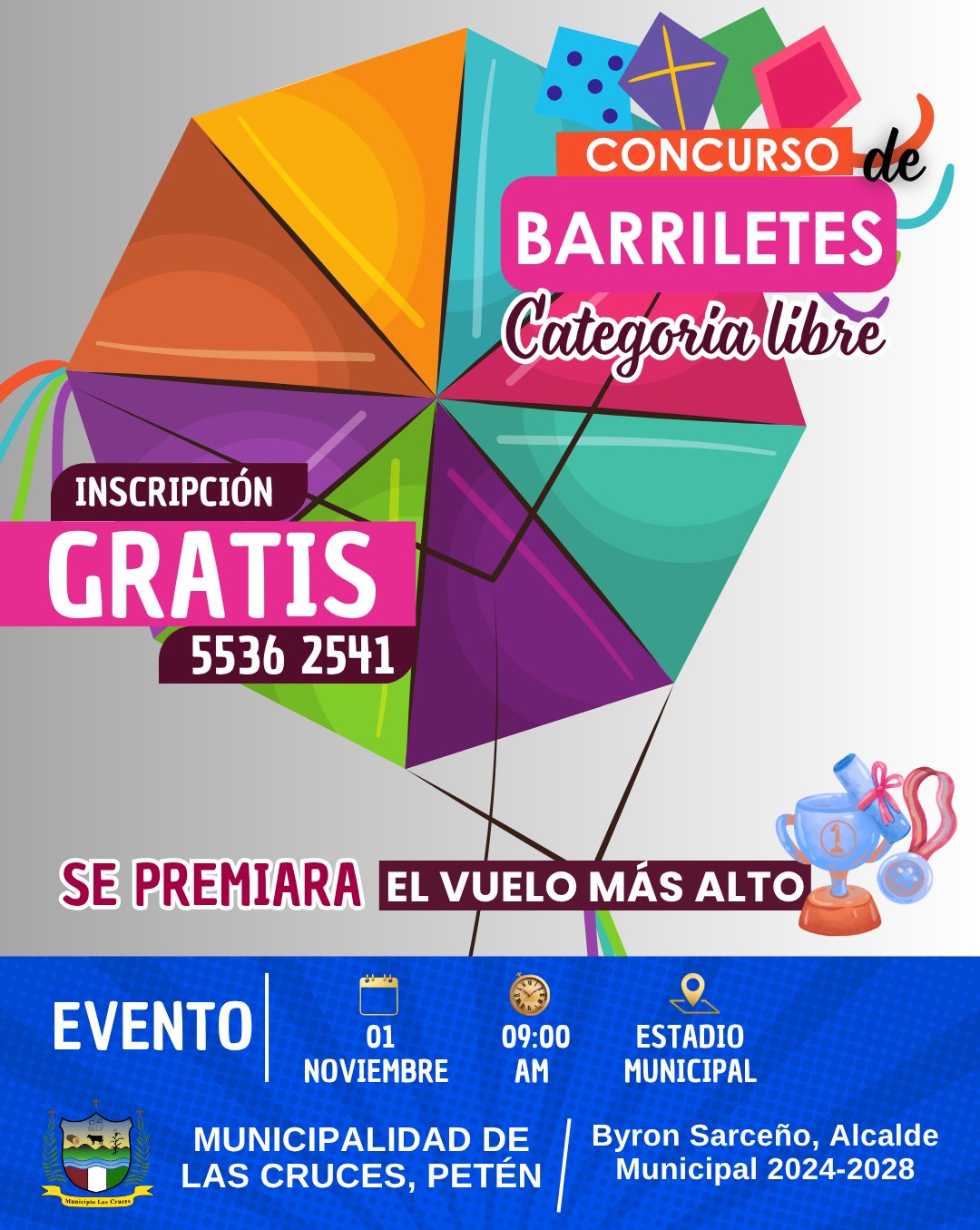 𝗜𝗡𝗦𝗖𝗥Í𝗕𝗘𝗧𝗘 ¡¡𝗚𝗥𝗔𝗧𝗜𝗦!! aquí 5536 2541 y participa en el Concurso de Barriletes este 1 de noviembre a las 9:00 am. En el Estadio Municipal Miguel Hidalgo.