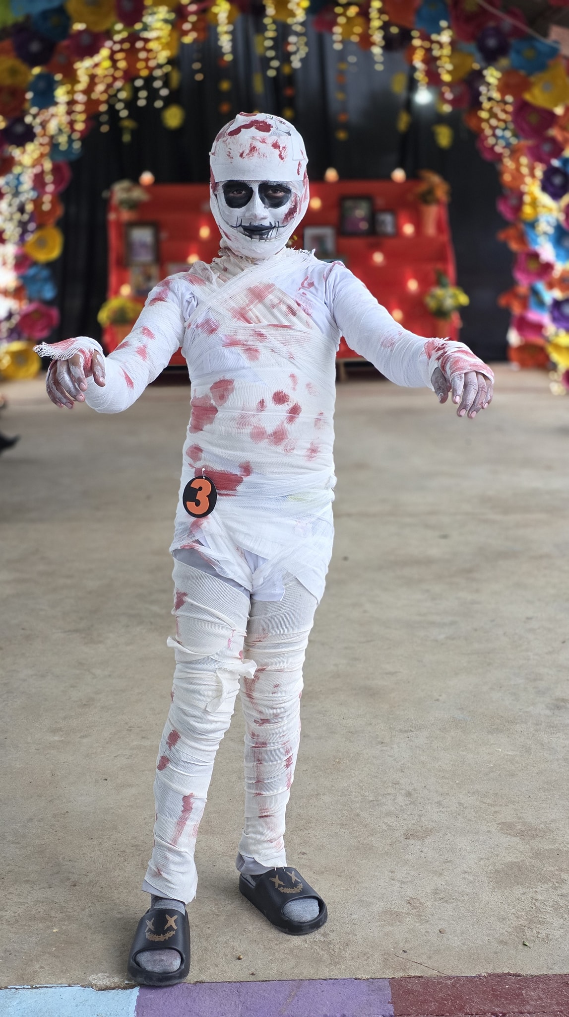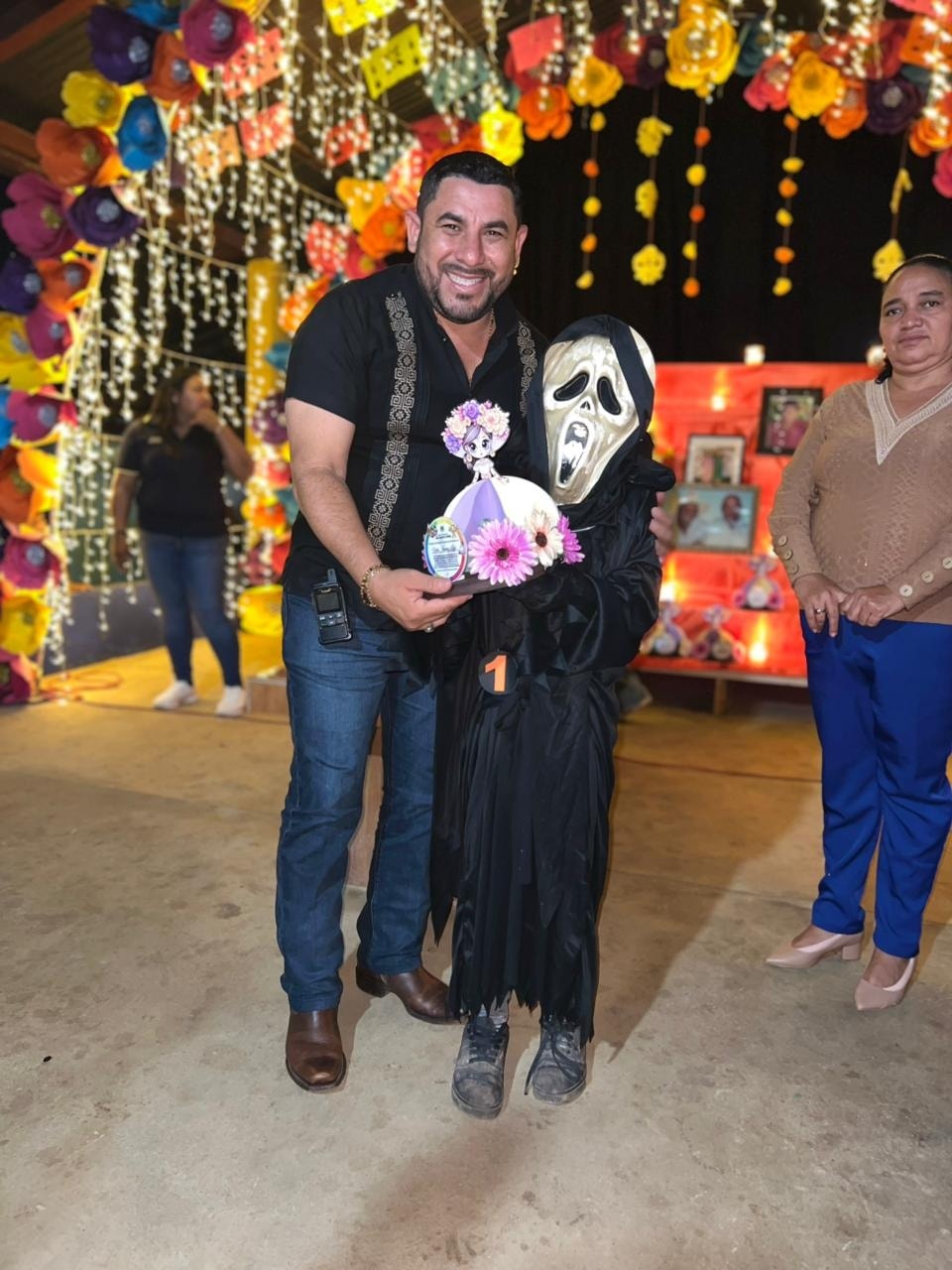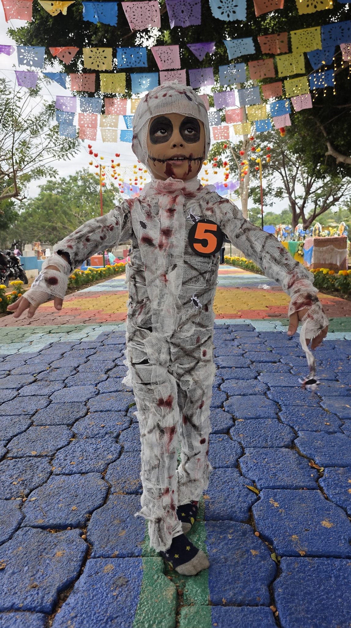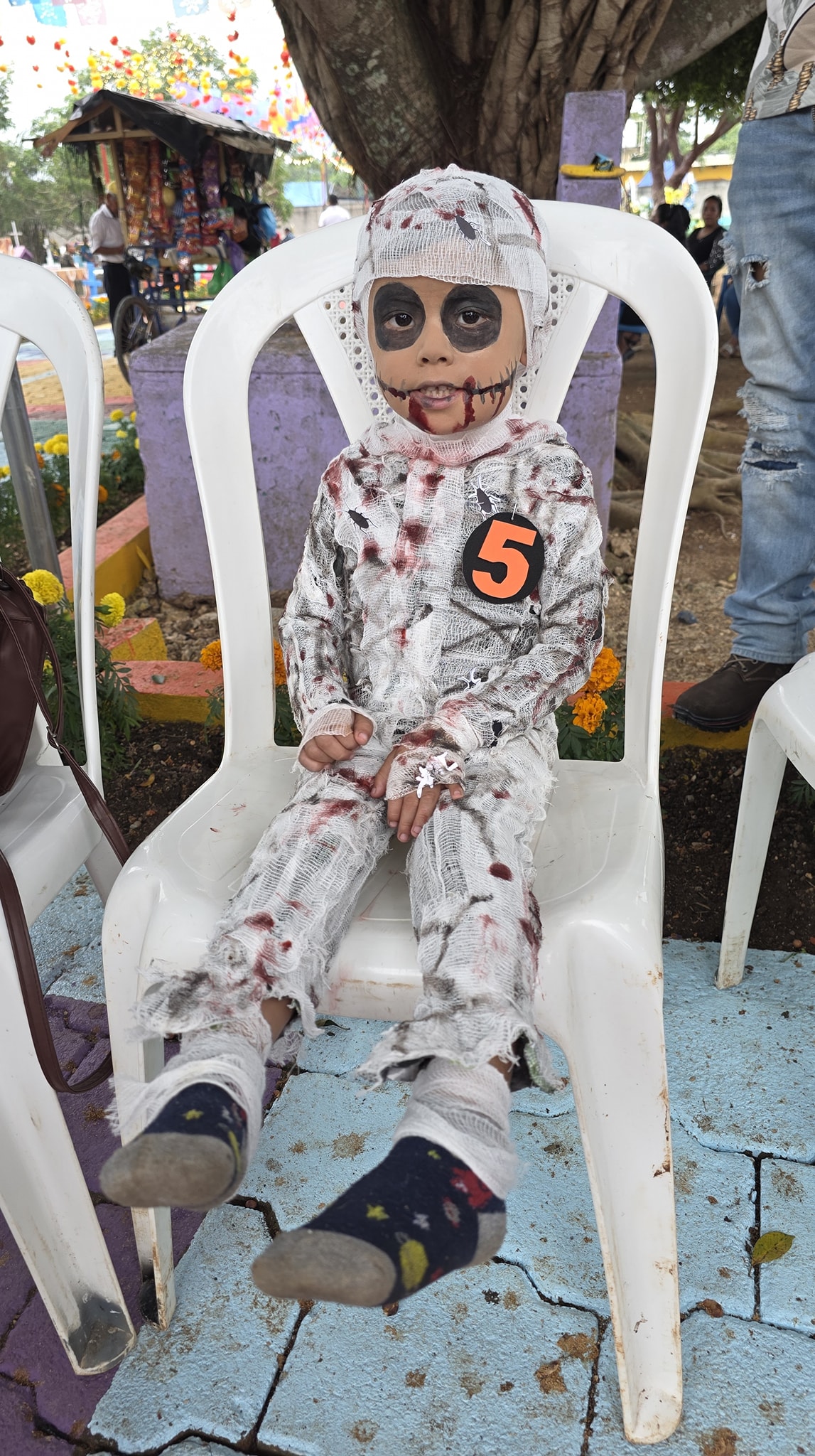 Y este no 1 de noviembre fue muy motivante para los niños ya que ocho niños participaron en una pasarela con sus disfraces los cuales Fueron aplaudidos por el público que asistió al cementerio general de Las Cruces Petén.