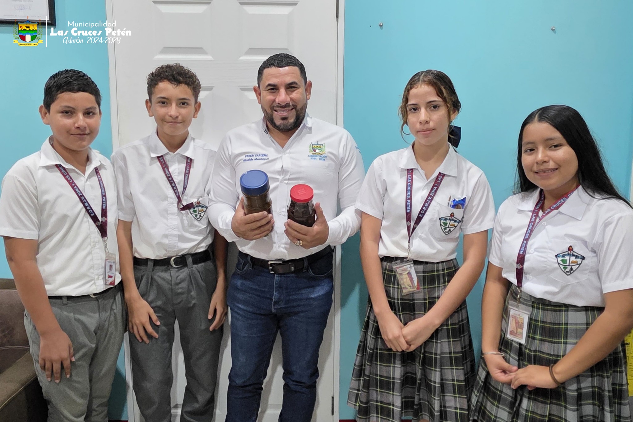 En su visita los estudiantes de dicho centro educativo, hicieron la entrega de un bonito regalo al alcalde municipal profesor Byron Sarceño agradeciendo el apoyo constante que brinda hacia la educación del municipio.
