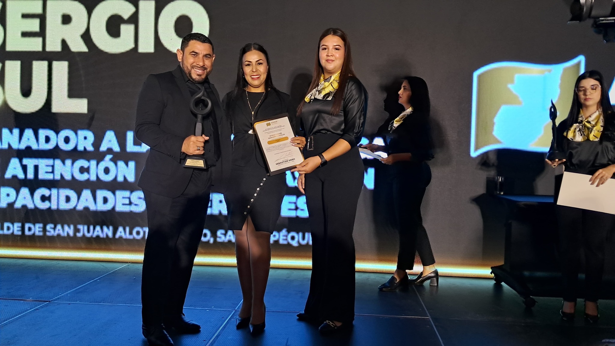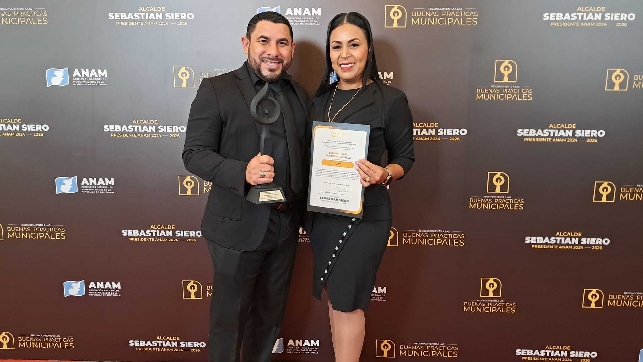 El señor alcalde Prof. Byron Sarceño, acompañado de la primera dama municipal Kendy Álvarez de Sarceño, recibió hoy 7 de noviembre un reconocimiento otorgado por el presidente de la ANAM, Ing. Sebastián Siero, y la Junta Directiva 2024–2026, en reconocimiento a sus buenas prácticas municipales en la categoría de Atención a Personas con Capacidades Diferentes.
