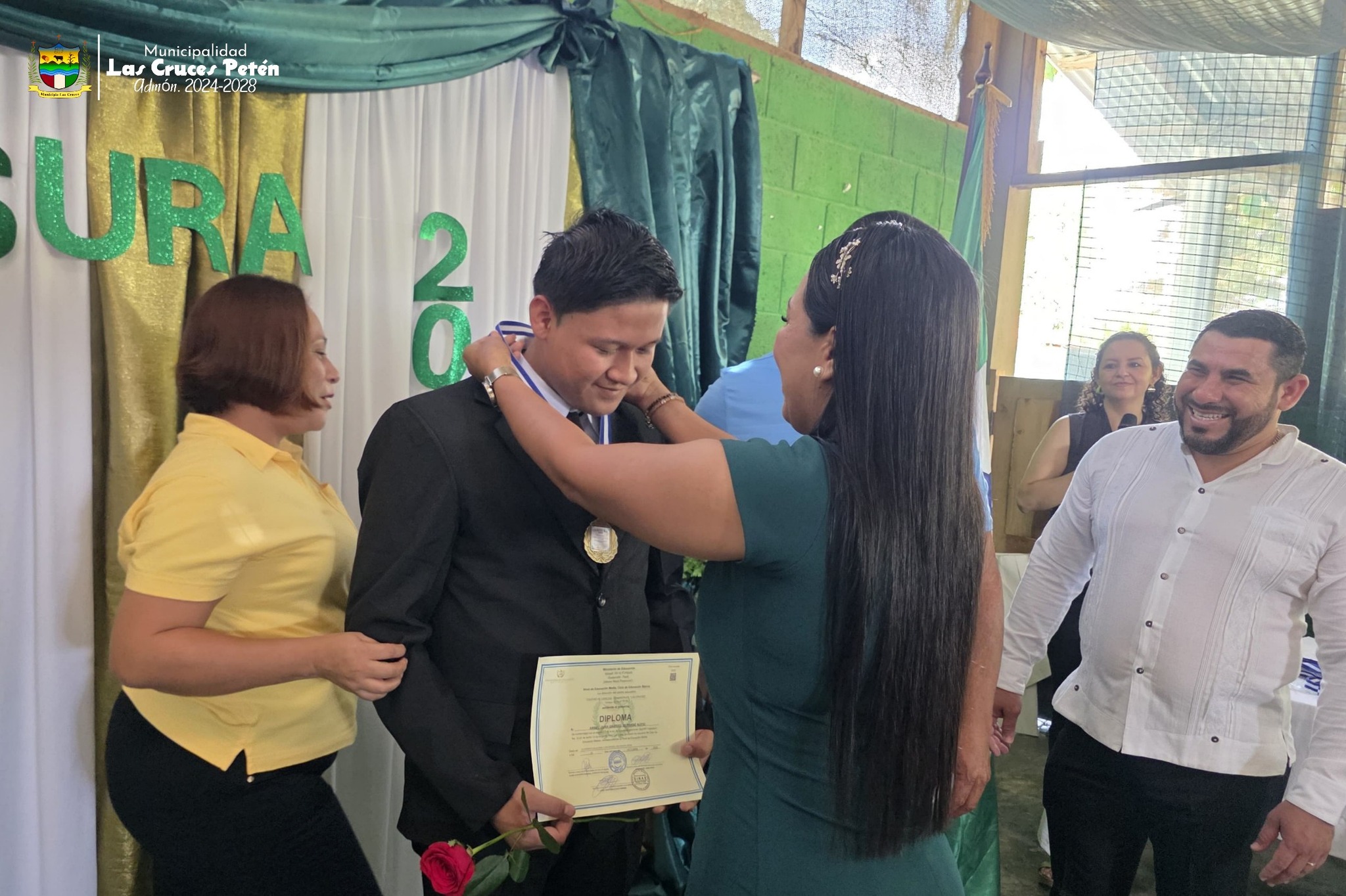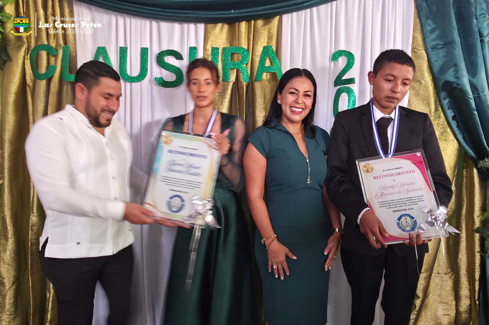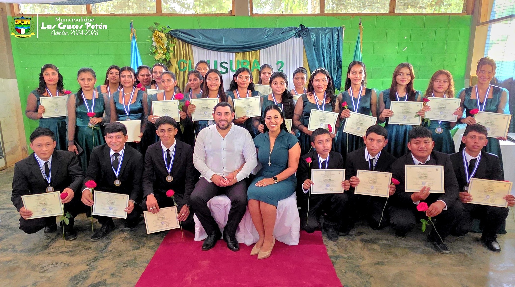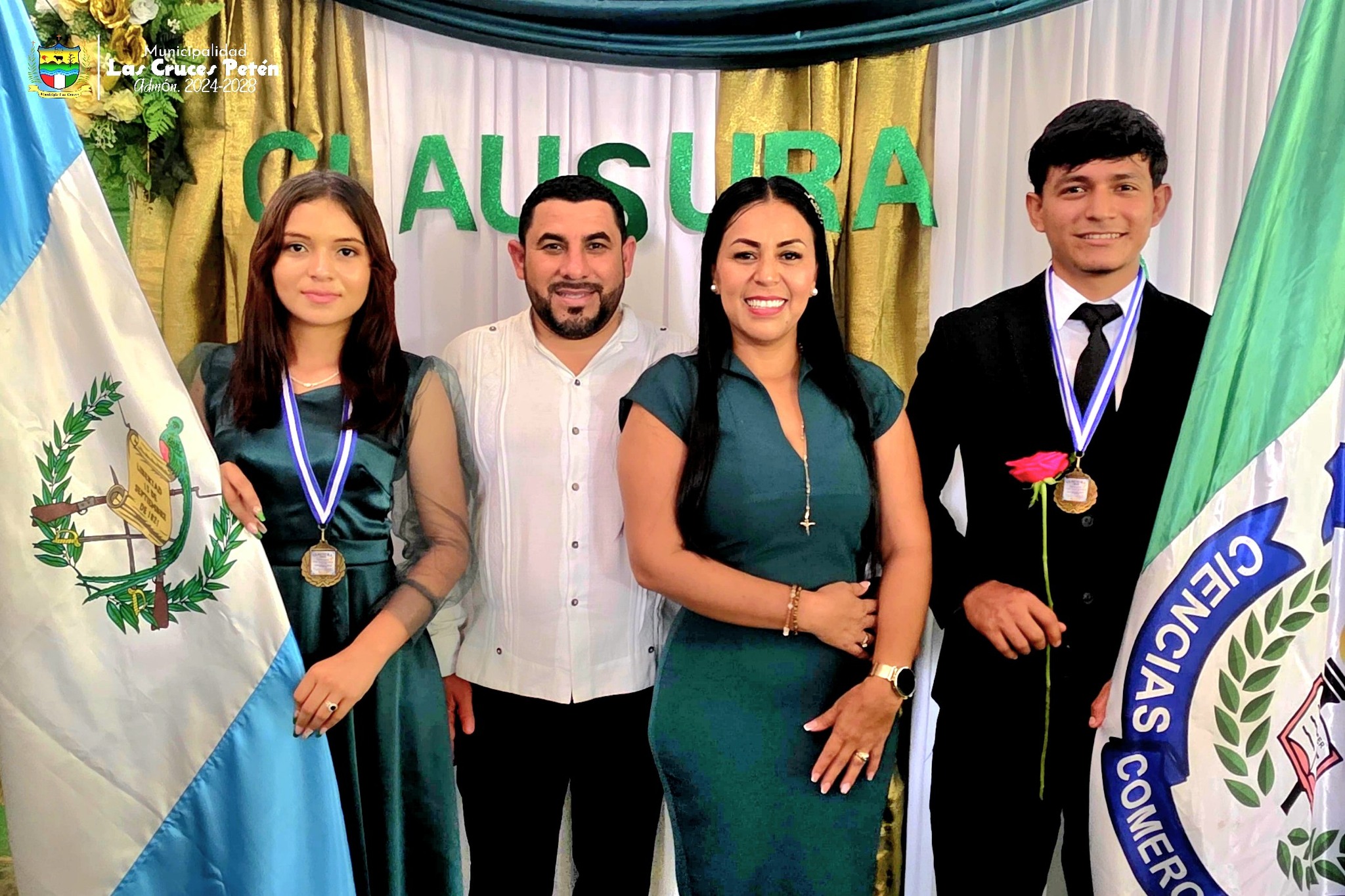#PadrinosDePromoción//En una emotiva ceremonia, el Alcalde Municipal profesor Byron Sarceño, junto a su esposa, la Primera Dama del Municipio Kendy Alvarez de Sarceño , participaron en la clausura de los alumnos de tercer grado básico del Colegio de Ciencias Comerciales del ciclo escolar 2025.