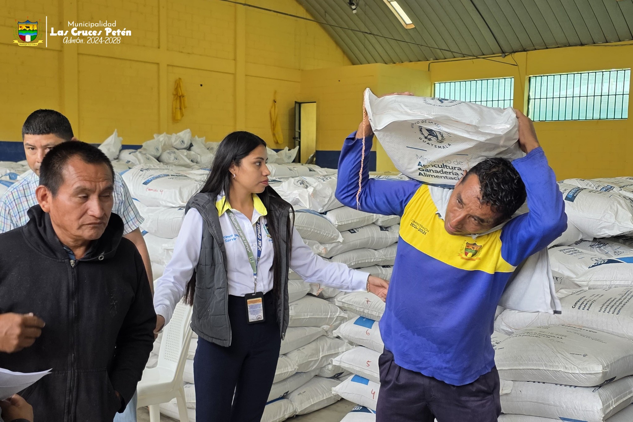 #ApoyoComunitario//Hoy, gracias al inquebrantable apoyo del alcalde municipal profesor Byron Sarceño, la comunidad de la aldea El Pato se benefició con la entrega de fertilizante proporcionada por el MAGA.